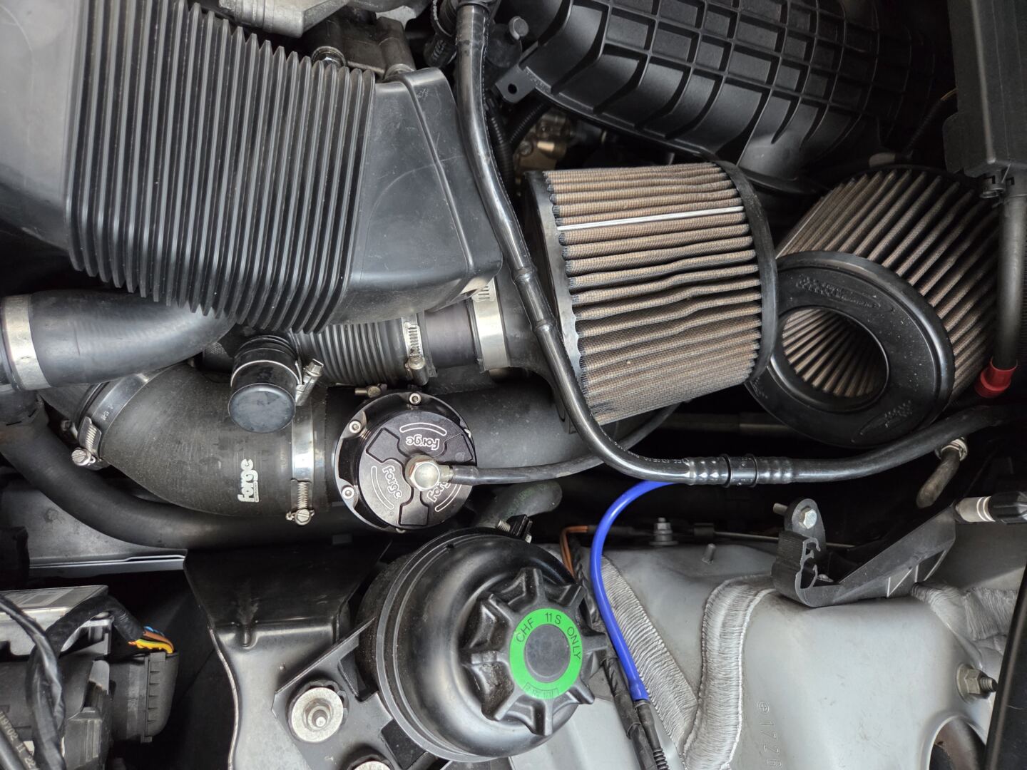 - Forge Blow off Valve op een keramische chargepipe (standaard chargepipe scheurd vaak en is uit voorzorg vervangen voor dit exemplaar)